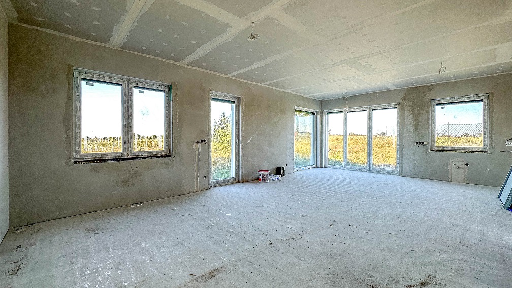 Dom jest wybudowany z wysokiej jakości materiałów, przygotowany pod prace wykończeniowe.