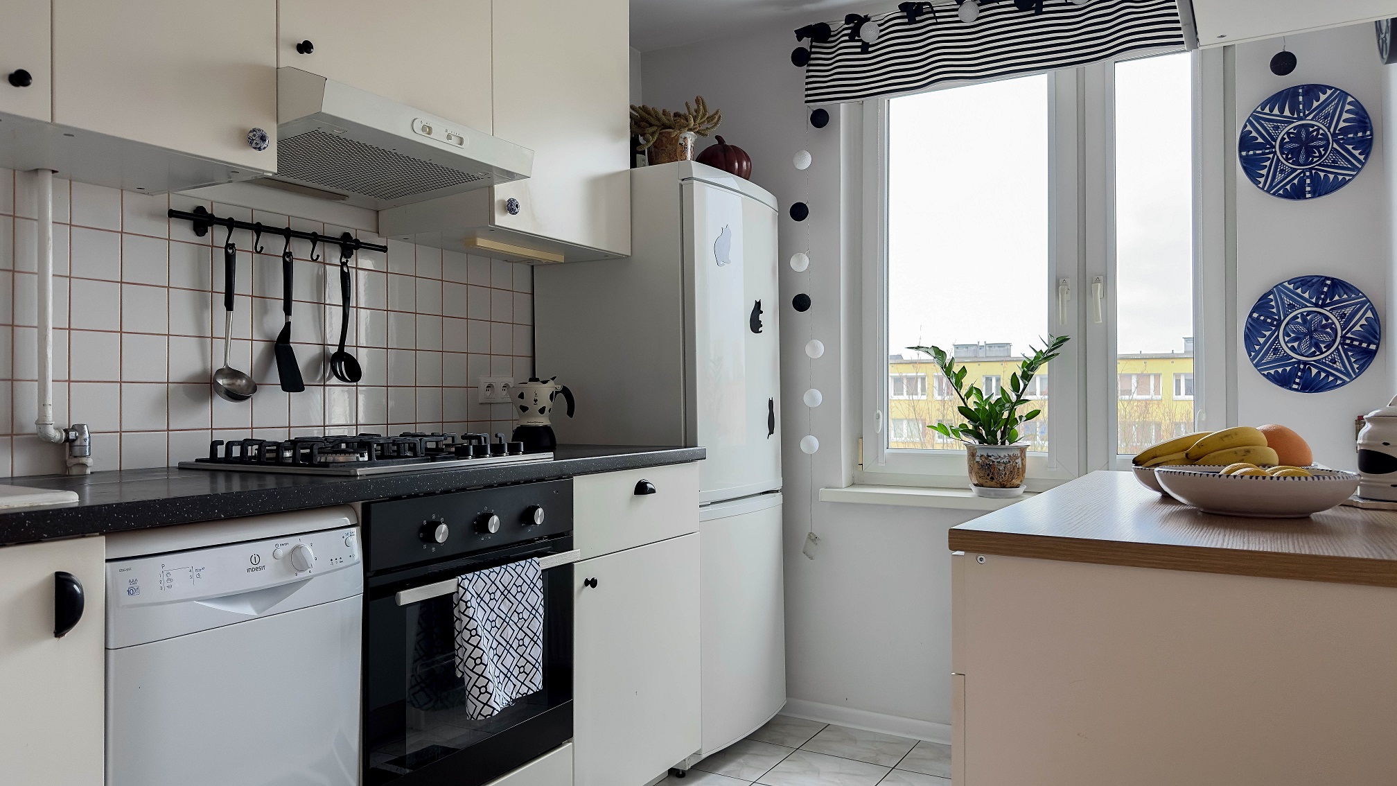 Mieszkanie bardzo zadbane i dobrze utrzymane. Na podłodze w pokojach i korytarzu jasne panele w bardzo dobrym stanie, w kuchni i łazienkach - płytki podłogowe. Ściany szpachlowane. Okna plastikowe w dobrym stanie. Kuchnia z meblami na wymiar - jasna, w bardzo dobrym stanie. Ogrzewanie w mieszkaniu miejskie.