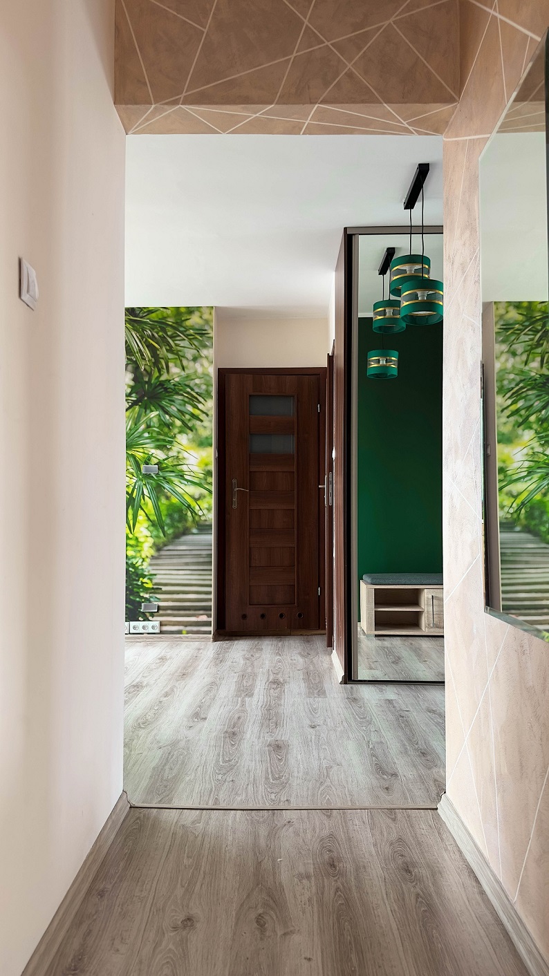 Mieszkanie jest utrzymane w wibrujących, żywych kolorach, z motywem tropikalnych elementów. Tu każde pomieszczenie emanuje energią barw.