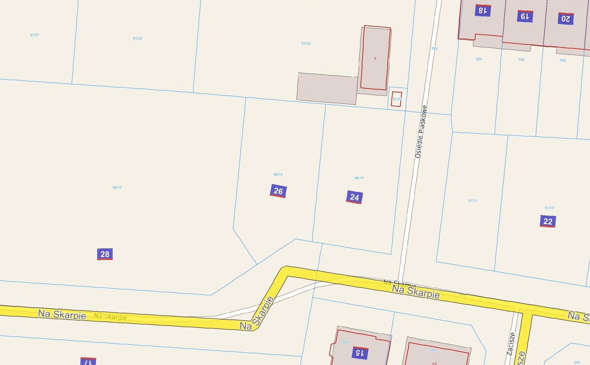 Dz. nr 96/13 o pow. 564 m2 oraz Dz. nr 96/14 o pow. 540 m2. Łączny obszar – 1104 m2