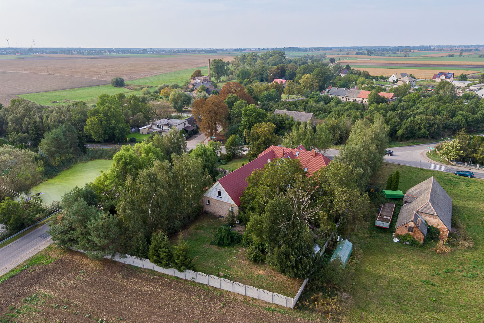 Na działce o obszarze 3.477m2 znajduje się kompleks budynków (budynek mieszkalny + sala kominkowa/bankietowa przekształcona na cele mieszkalne) o pow. ok. 540 m2 z początku XX w. odrestaurowanych w ostatnich latach.