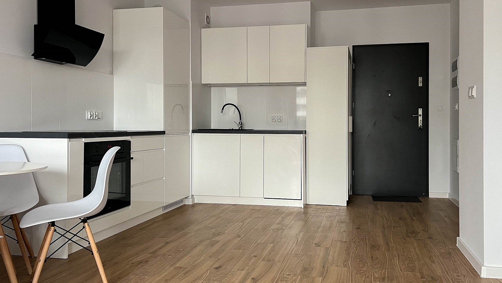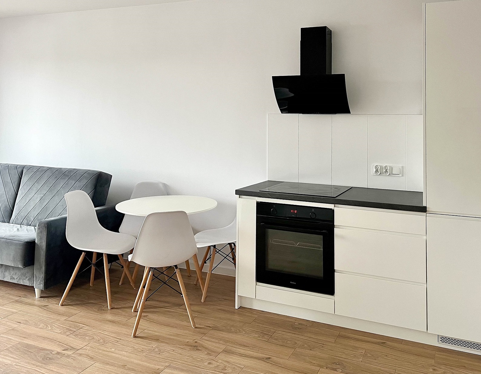 W kuchni znajduje się zmywarka, lodówka, piekarnik, oraz płyta indukcyjna.