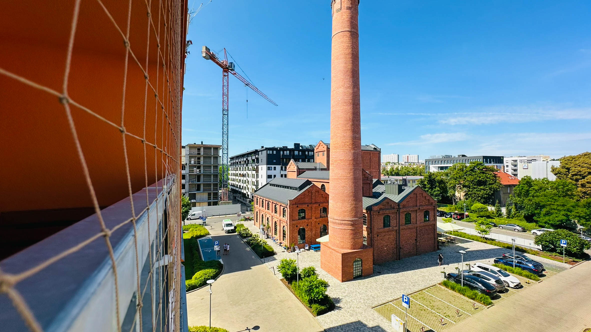 Mieszkanie o powierzchni 42 m2 znajduje się na 4 piętrze budynku z windą. Budynek z 2022 r. znajduje się na cichym i spokojnym osiedlu w pobliżu zabytkowej Spalarni. Osiedle jest zamknięte i monitorowane.