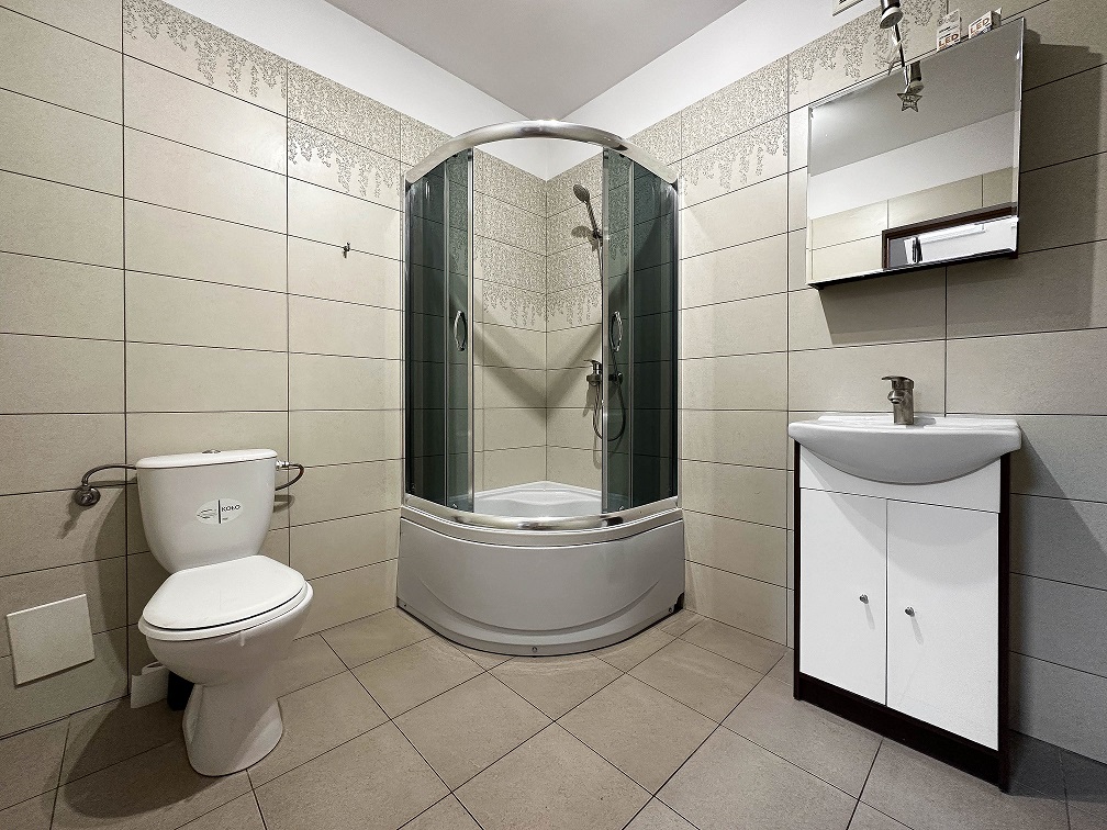 Każda kondygnacja ma swoją łazienkę. Na piętrze znajduje się dodatkowo kuchnia z AGD.
