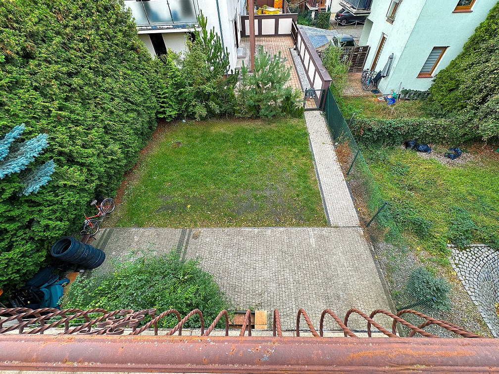Działka o powierzchni 330 m2 z ogrodem w tyle budynku. Na posesji znajduje się miejsce do parkowania dla 5 aut (2 auta w garażu, 3 miejsca naziemne)