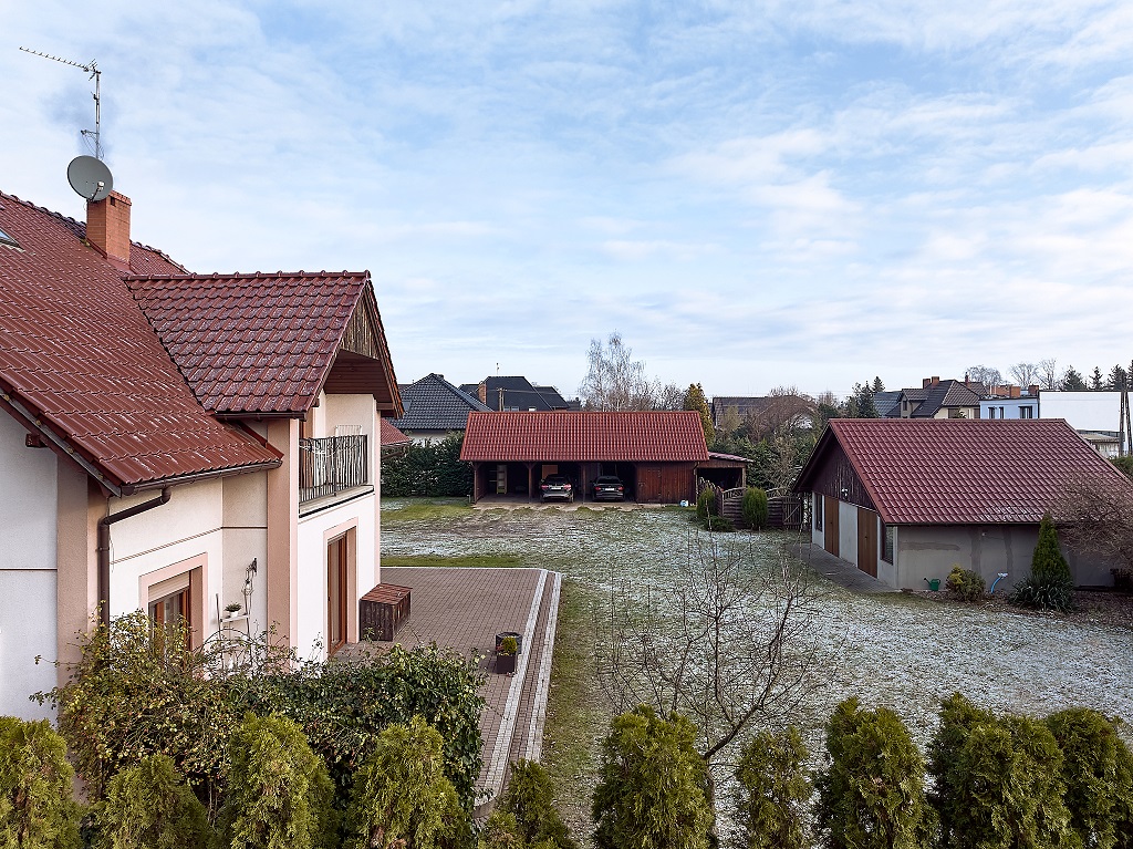 Na działce znajduje się dodatkowo duża wiata na dwa samochody, oraz murowany budynek gospodarczy. Dom wybudowany w 2007 r.