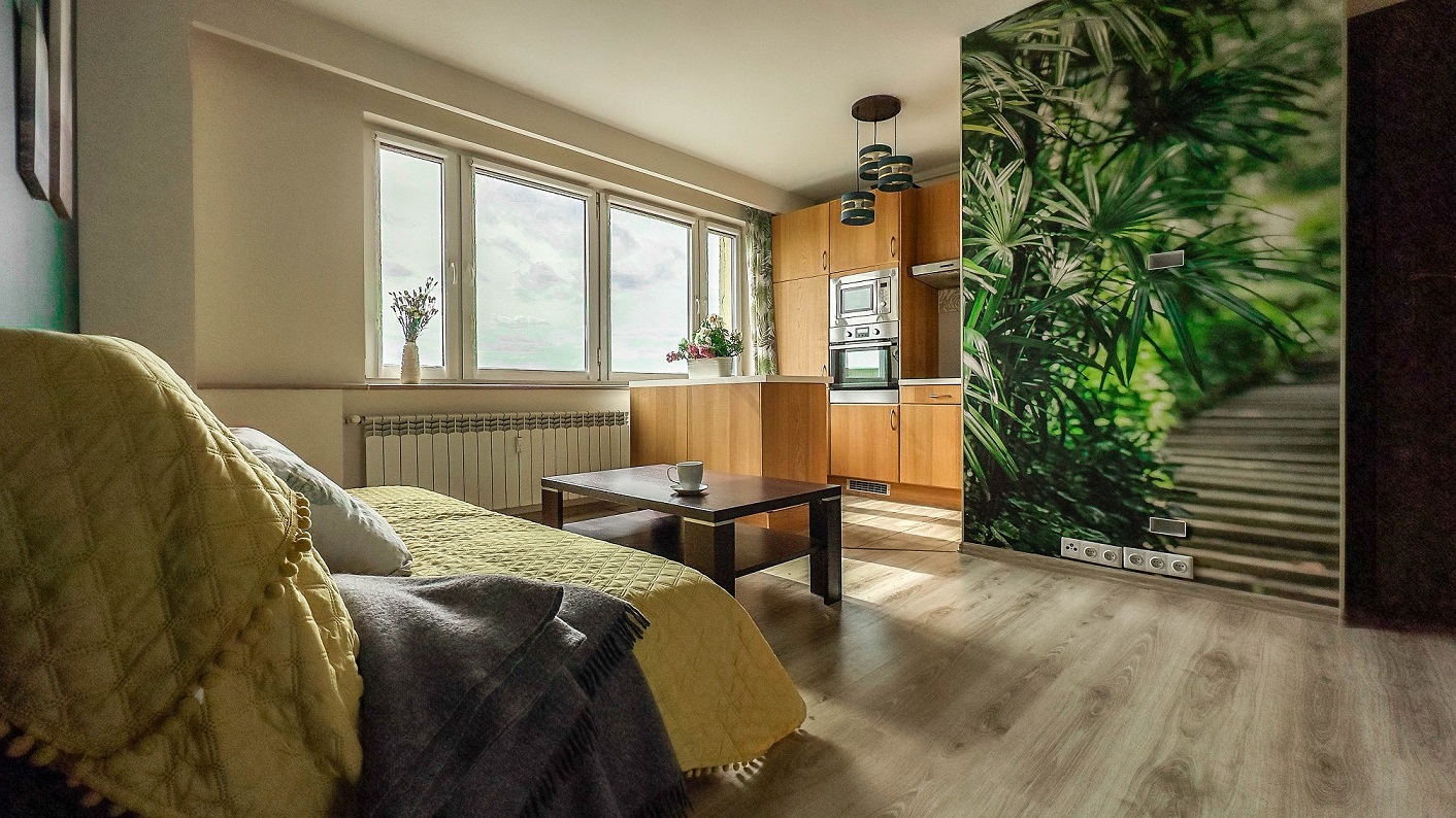 Mieszkanie jest całkowicie wyposażone w meble, oraz sprzęt AGD w kuchni (lodówka, zamrażarka, zmywarka, okap, piekarnik, płyta ceramiczna cztreopolowa).