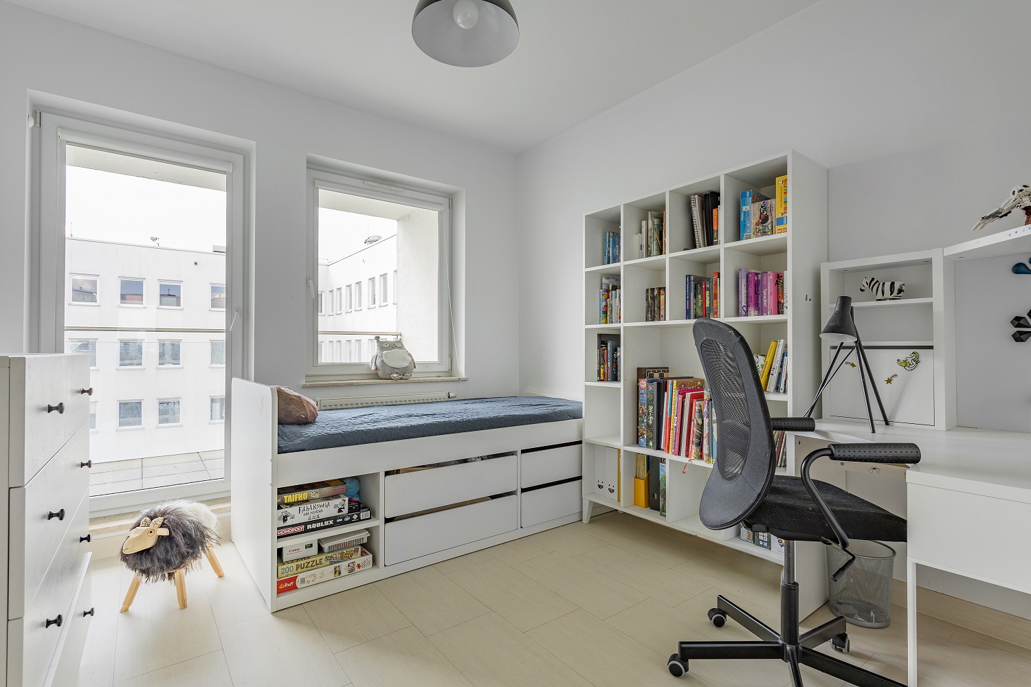 Mieszkanie o idealnym układzie wnętrz. Cztery niezależne przestronne i jasne pokoje (3 pokoje z wyjśćiem na balkon), oddzielna jasna kuchnia wyposażona we wszystkie niezbędne sprzęty AGD, przestronna łazienka z wanną oraz oddzielne WC dla gości. Mieszkanie jest dwustronne przez co wszystkie pomieszczenia są idealnie doświetlone. Całość stanowi bardzo przemyślane i wygodne miejsce do życia.