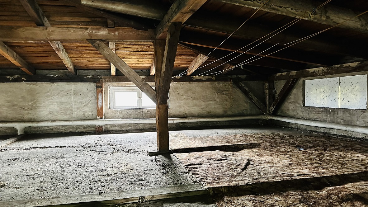 Piwnica o wysokości ok. 2,5 m i powierzchni 129,80 m2, poddasze o wysokości ok. 1,4 m i powierzchni 98,9 m2 oraz klatka schodowa o powierzchni 34,39 m2 stanowią powierzchnię wspólną nieruchomości. W piwnicy znajdują się obszerne pomieszczenia gospodarcze, kotłownia i korytarz.