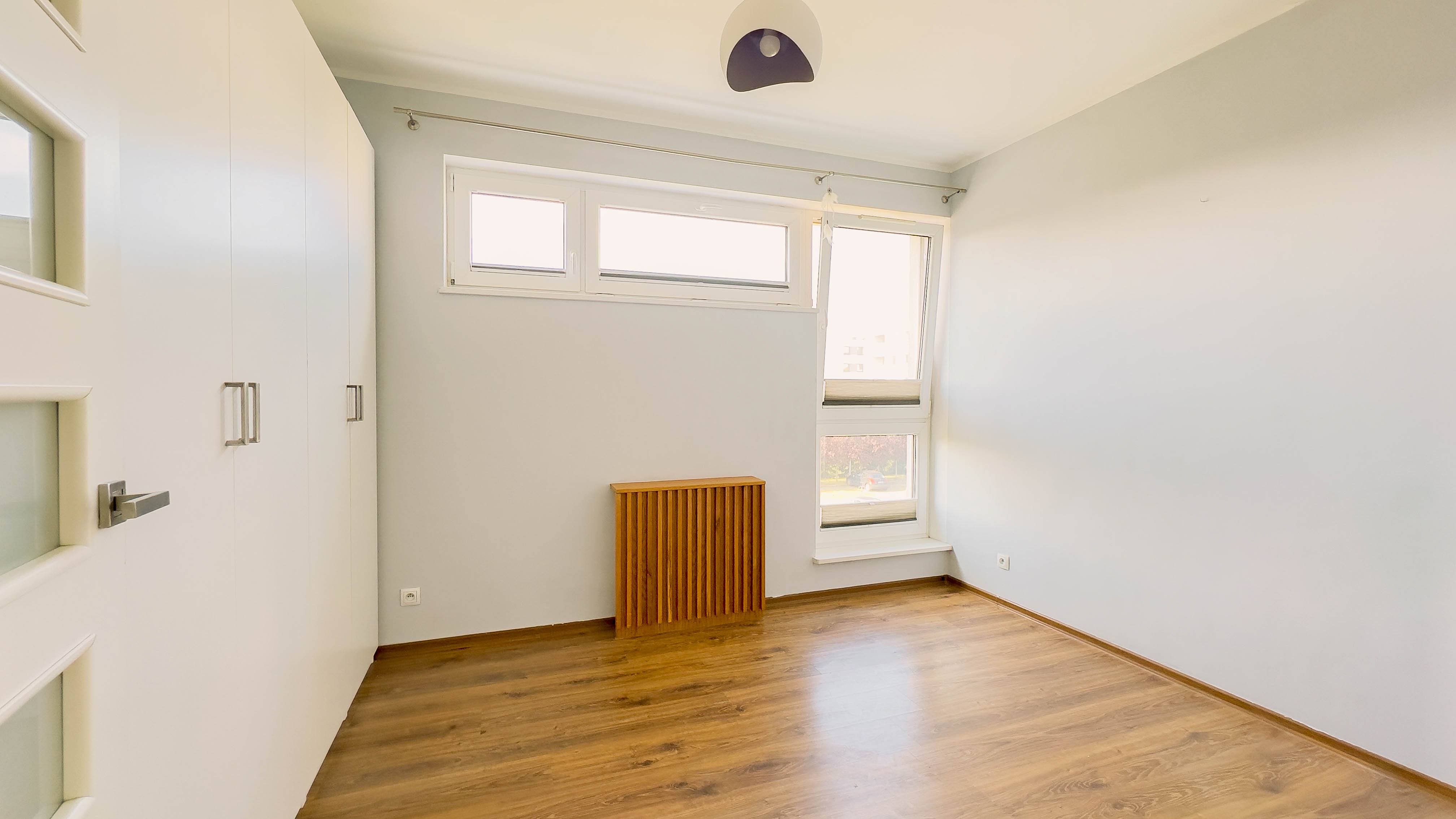 W jednej sypialni znajduje się obszerna szafa typu komandor.