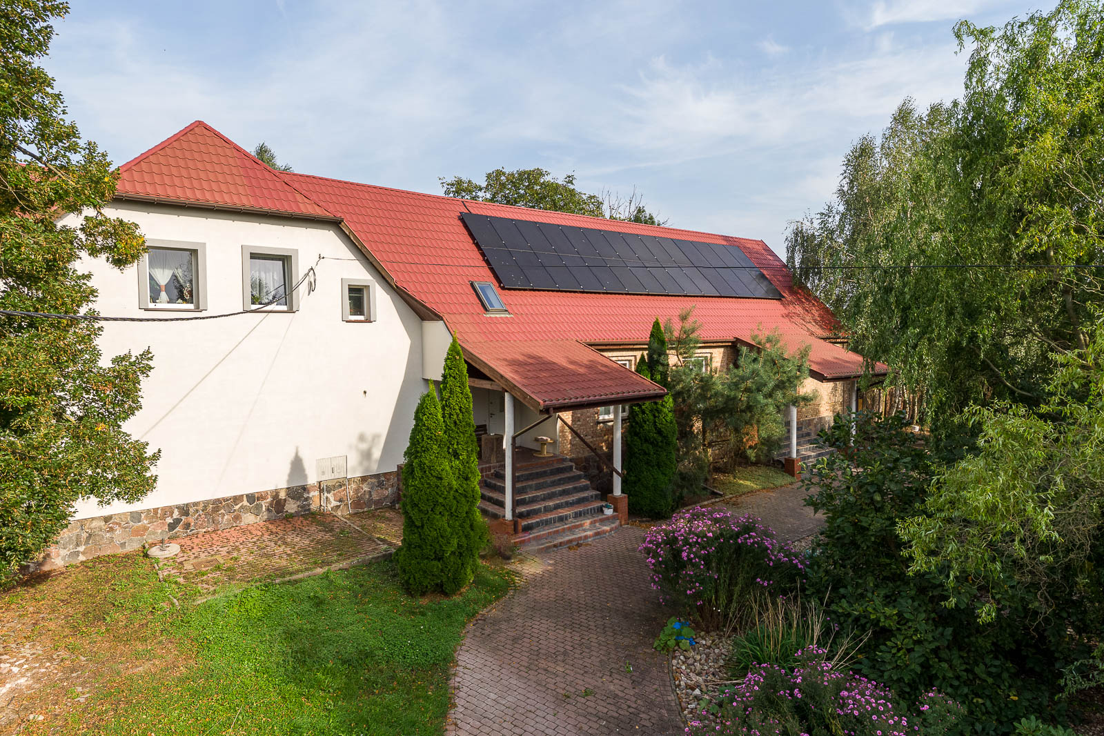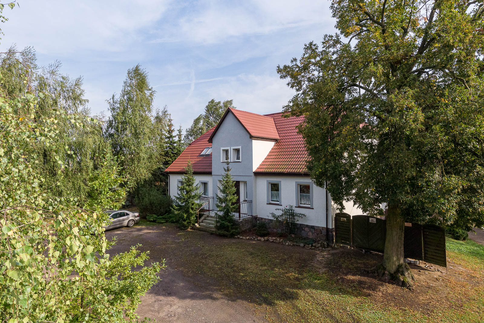 Na działce o obszarze 3.477m2 znajduje się kompleks budynków (budynek mieszkalny + sala kominkowa/bankietowa przekształcona na cele mieszkalne) o pow. ok. 540 m2 z początku XX w. odrestaurowanych w ostatnich latach.